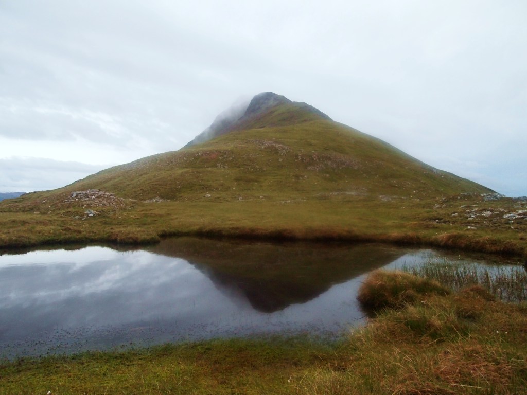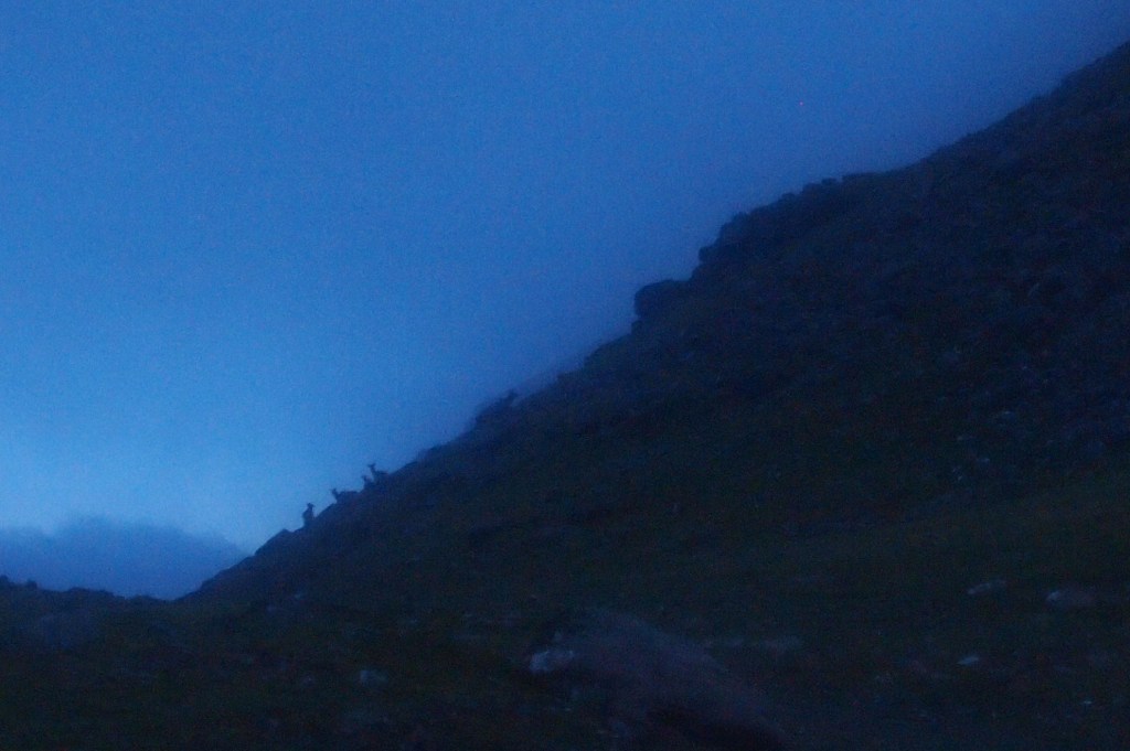 Near the summit of Canisp I had the completely unexpected sight of a large herd of red deer, who in the dim light had a bit of reindeer about them due to their sizeable antlers. They seemed even more surprised to see me and belted off around the peak but I attempted to get a few photos…