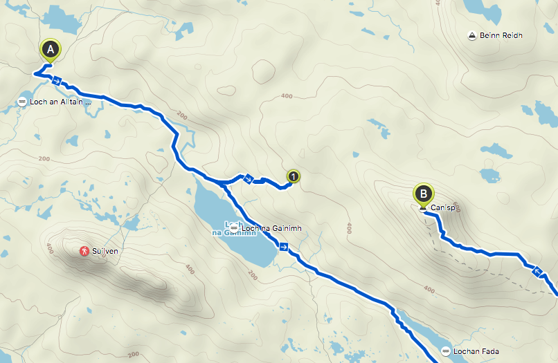 With no idea what the weather would be the following day I hastily packed for a sunset hike, complete with obligatory head torch. As Suilven is the more visibly impressive of the two mountains I set off on the path for Canisp for views over Suilven. Unfortunately, I had seriously overlooked the fact that there was no genuine path up either mountain beyond the tracks I had followed up to the Bothy. These tracks do spear off towards either mountain but only go about half of the way up Canisp, and due to the rain of the last few days the bogs beyond the path end were very boggy and I was getting very soggy.