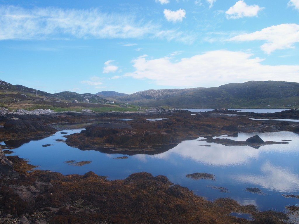 Fresh from leaving with a large dried bag South Uist took a turn for the better. The central road plateau and the coastline to the west remained shrouded in cloud, but to the east there was bright sunshine emerging. Although I had planned to turn left towards the West Coast (due to the lack of routes continuing northwards to the east), I saw a turn to the right for Loch Aineort and thought why not, especially considering I needed to dry out the tent after the night before. Though not the most dramatic of lochs the sunshine more than made up for it, and I was able to while away a good chunk of the afternoon waiting for the tent to try, drinking tea, and trying to spot any rogue otters.