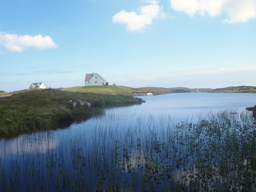 The landscape was also beginning to change again, with the hills of North Uist emerging in the distance over the next causeway to the small island of Grimsay. On the following causeway to North Uist I passed another two cyclists, before encountering numerous others at the start of North Uist. Finally the Hebridean tour was out in force and being a Sunday the cyclists outnumbered the motorists!