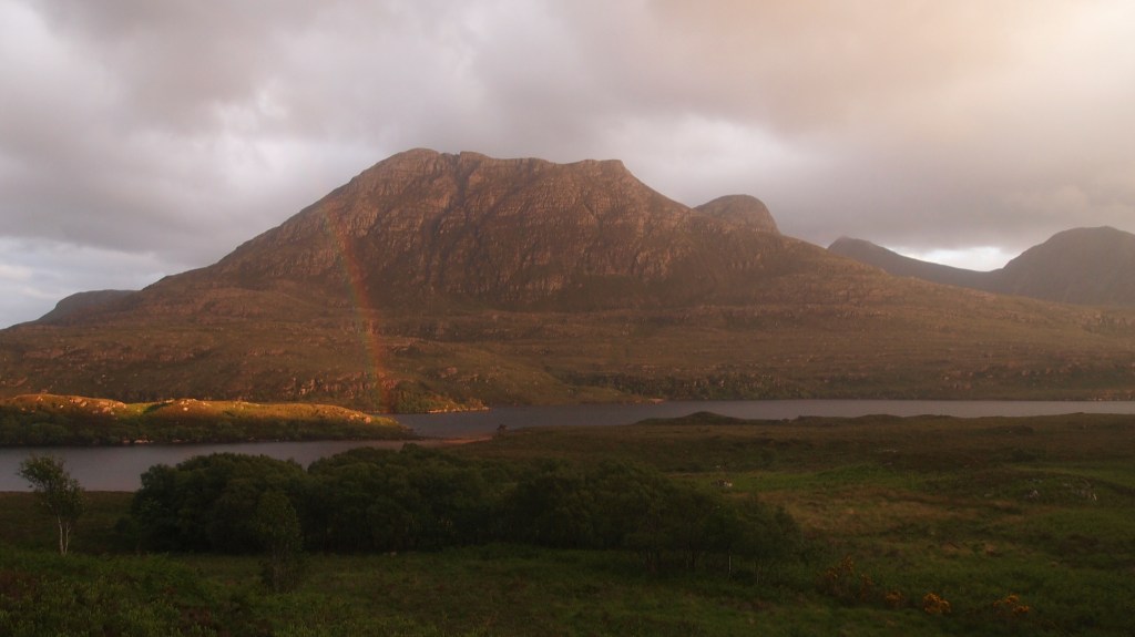 On arrival at a grey looking Ullapool, I was lacking somewhat in motivation. The journey through the Outer Hebrides had already felt like a complete journey in itself. Arriving back on the mainland to such bleak weather felt like a continuation of the similarly bleak final day on the Hebrides, and didn’t put me in good spirits. Barely 3 miles north of Ullapool I considered stopping for the night at the campsite at Ardmair, as the dark clouds on the towering hills ahead didn’t look particularly inviting…